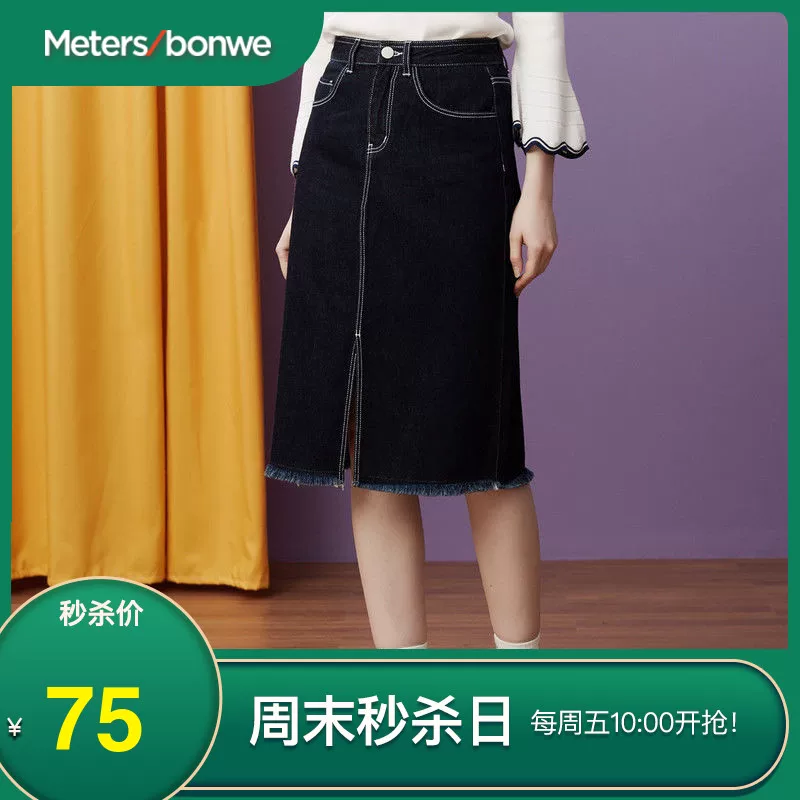 Váy métbonwe của phụ nữ mùa thu váy của phụ nữ chia váy giữa chiều dài denim - Váy