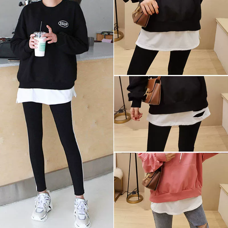 Váy hạ tầng của phụ nữ với áo len hoang dã kết hợp với áo phông trắng viền xếp bên trong váy ngắn - Váy