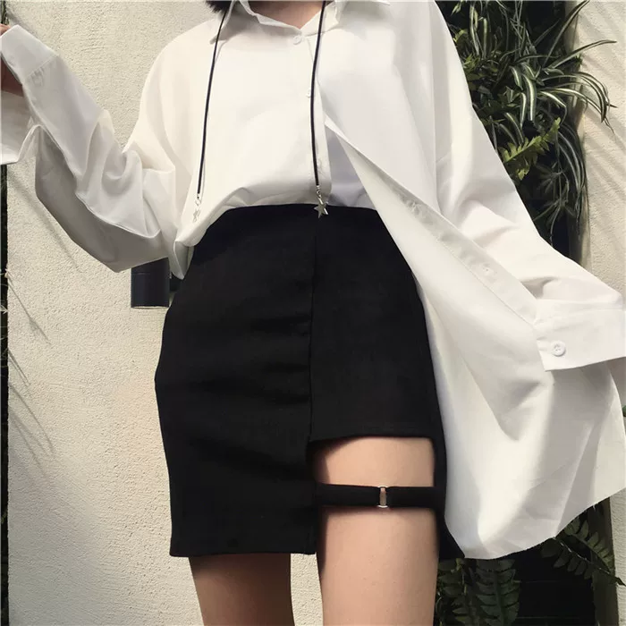 Hot girl váy sexy mùa xuân và mùa thu 2021 mới nữ siêu hot màu đen cạp cao chân váy khoét rỗng - Váy