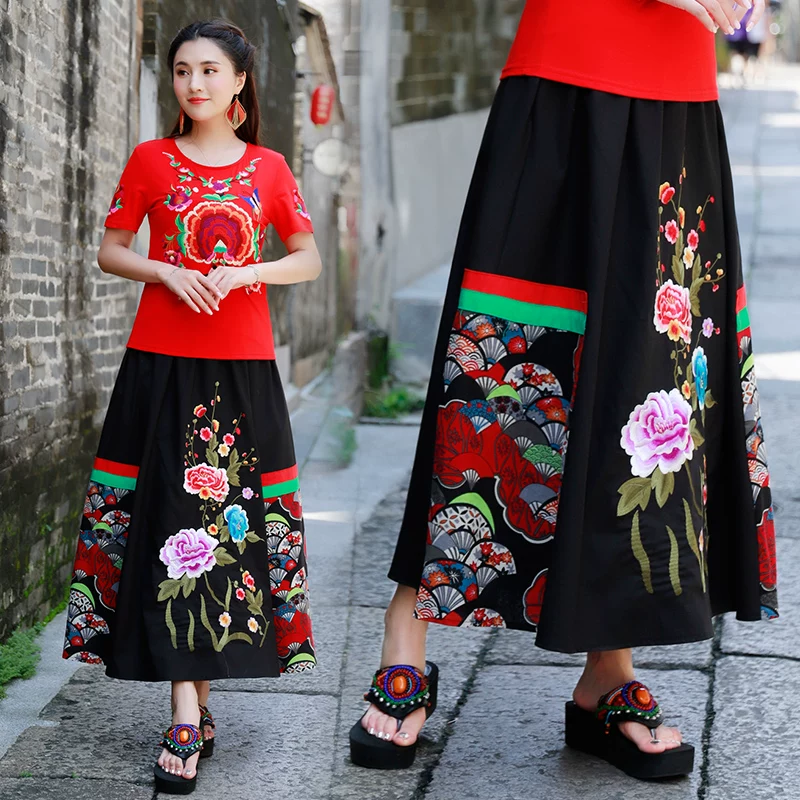 Phong cách dân tộc hàng ngày tất cả các trận đấu Hanfu váy mùa hè 2019 cotton và vải lanh váy xoay lớn nữ váy xòe văn học trung dài - Váy