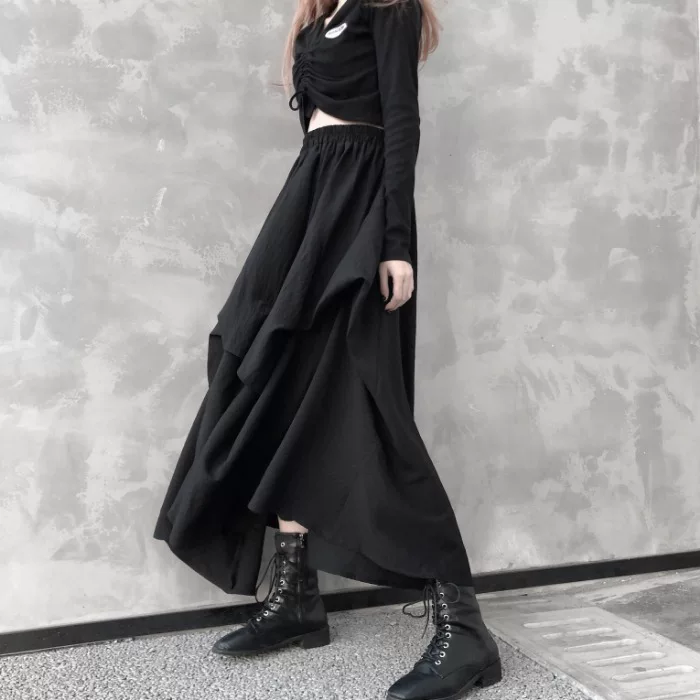 Yohji Yamamoto niche thiết kế cá tính phụ nữ tối 2021 phụ nữ mùa xuân và mùa hè eo đàn hồi bất thường phụ nữ - Váy