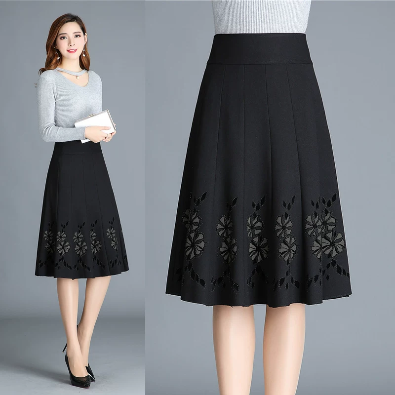 2021 mùa xuân và mùa thu mùa hè mới váy nửa chiều dài trung bình cộng với kích thước mẹ nữ khiêu vũ nửa chiều dài người trung niên và cao tuổi con lắc lớn - Váy