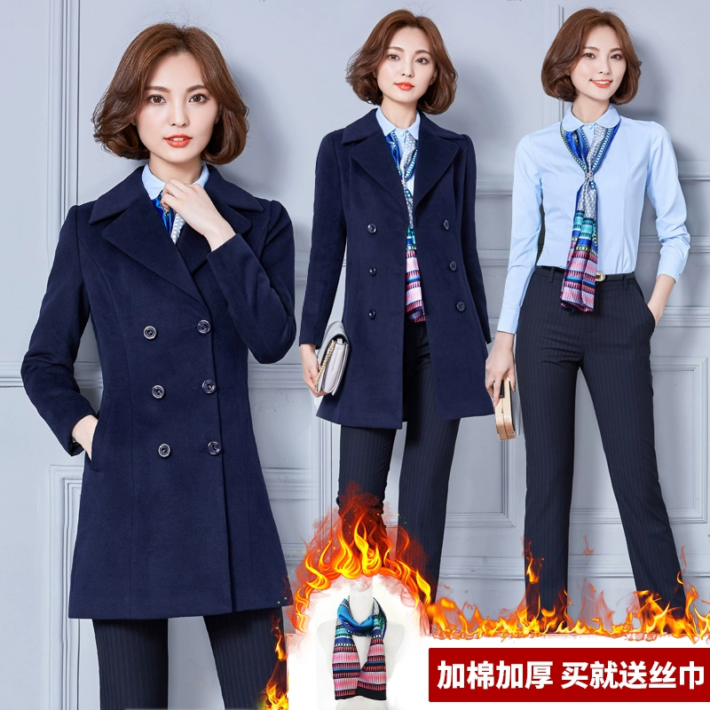 Áo khoác len cecho thêu dài giữa 2019 mùa đông mới áo len đôi ngực rộng nữ - Áo khoác ngắn