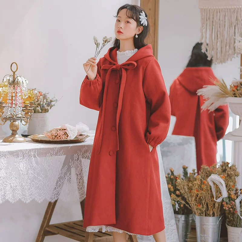 Áo lưới màu đỏ 2018 phổ biến áo khoác len nữ dài trung bình Áo len len Hàn Quốc phong cách thời trang Hepburn - Áo khoác ngắn
