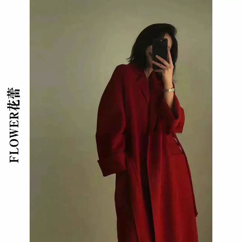 Áo cưới năm mới khí chất giàu có màu đỏ handmade áo khoác nữ 100 len đơn giản áo ngủ ren lỏng - Áo khoác ngắn