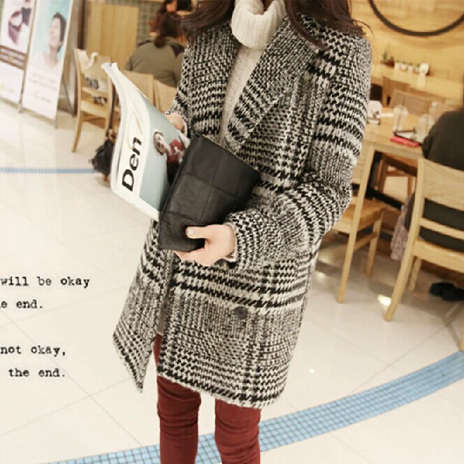 Mùa thu đông 2019 phiên bản mới của Hàn Quốc áo khoác len nữ dài vừa và len mỏng thời trang nữ - Trung bình và dài Coat