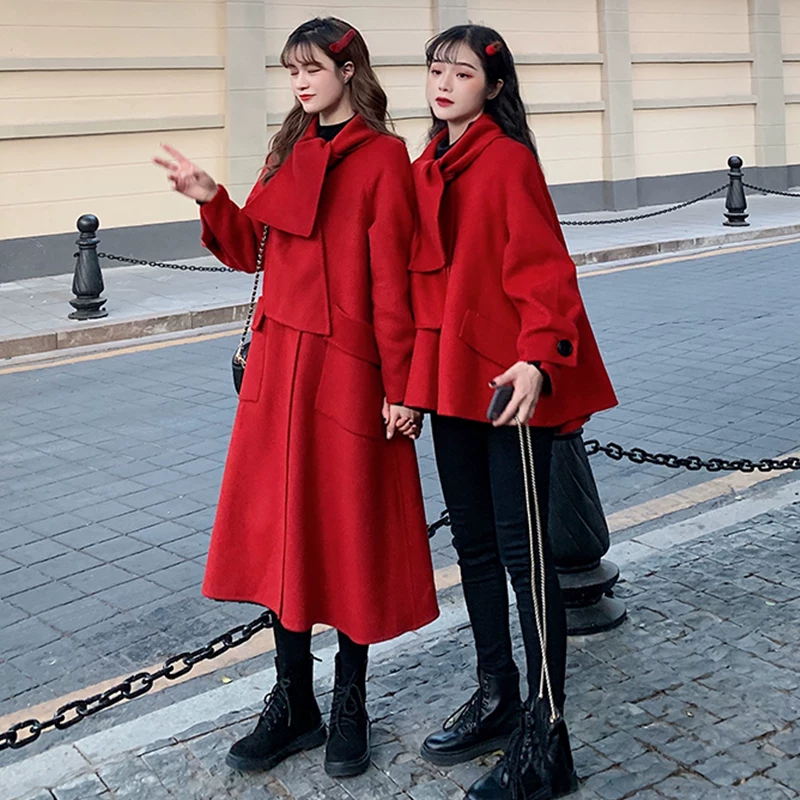 Thu đông 2019 mới năm mới ngọt ngào Bạn gái giáng sinh ăn mặc mid-style tây dài tay áo len nữ quần áo - Trung bình và dài Coat