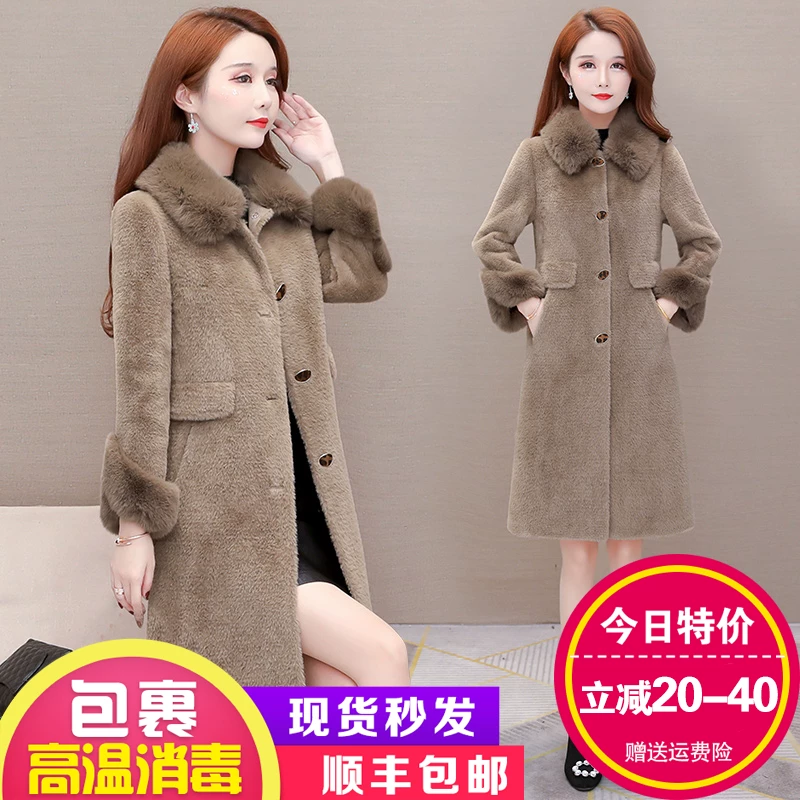 Ba màu 2019 mùa đông mới quần áo phụ nữ cửa hàng giảm giá lông cừu dài vừa phải Áo len 3 màu lông len - Trung bình và dài Coat