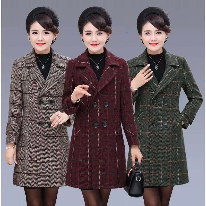 Phụ nữ trung niên mặc áo khoác len mùa thu và mùa đông 30 - 40 tuổi Mẹ trẻ tuổi áo dài kiểu Tây Nizi - Áo khoác dài