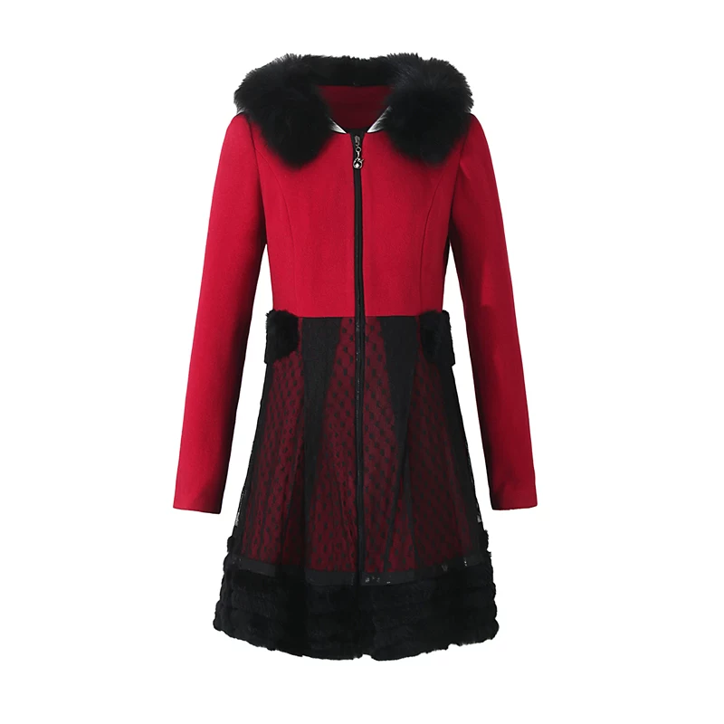 2017 phiên bản Hàn Quốc của áo khoác len mới cho nữ dài vừa phải và mỏng dày cộng với kích thước cổ áo lông của phụ nữ Áo khoác Nizi - Áo khoác dài