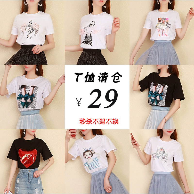 Mùa hè ngắn tay áo thun giải phóng mặt bằng phiên bản Hàn Quốc giảm tuổi xu hướng in ấn đính cườm nữ Hồng Kông hương vị áo thun trắng nữ hàng đầu - Cộng với kích thước quần áo