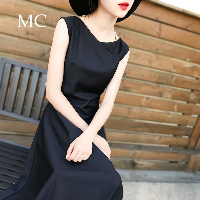 MC Châu Âu và Mỹ Quần áo nữ 2020 phong cách mùa xuân giữa chiều dài nữ tính khí váy đầm mỏng váy đen váy không tay váy nữ - Cộng với kích thước quần áo