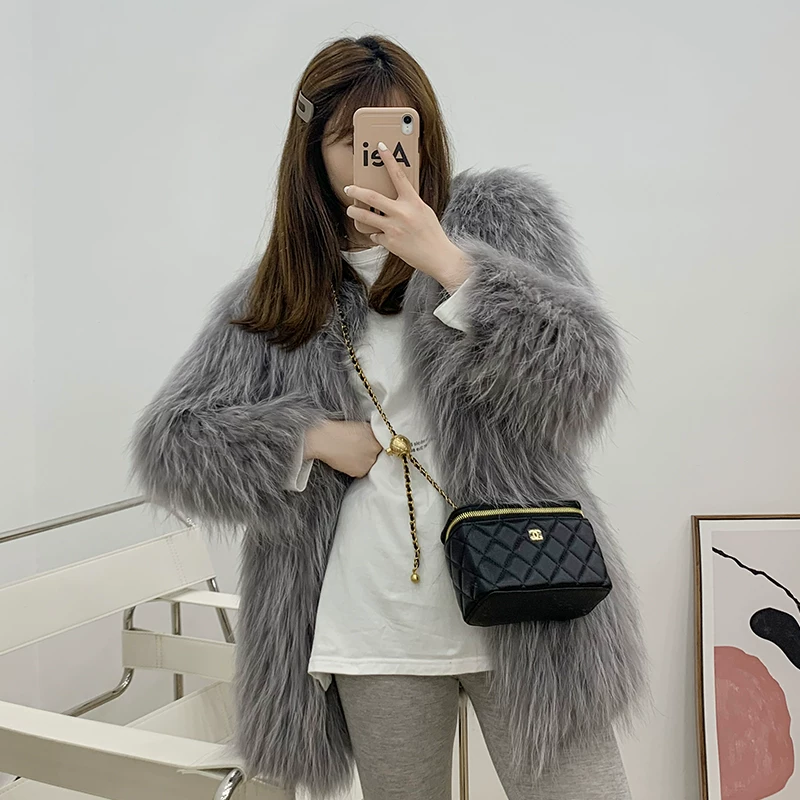 QINS2020 mùa đông áo khoác lông cáo nhập khẩu mới dành cho nữ thời trang mid-slim phiên bản mỏng của Hàn Quốc - Faux Fur