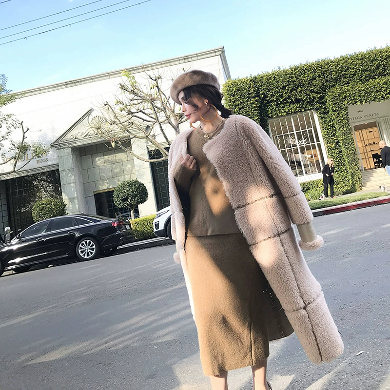 Áo khoác lông cừu cho nữ mùa đông 2018 mới rex lông thỏ lót giữa dài quá gối phủ lông - Faux Fur