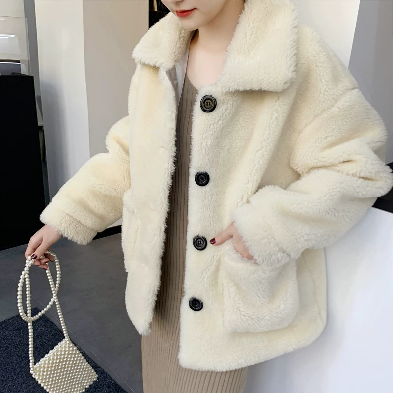 Lông ~ Thoải mái, ấm áp, thân thiện với môi trường, lông tổng hợp, len, lông cừu dạng hạt, áo khoác ngắn, mùa thu và mùa đông nữ P96764 - Faux Fur