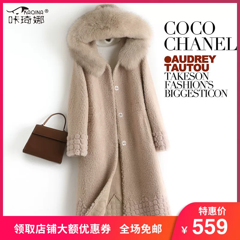 Nalanxun 2020 mới mùa đông dài phụ nữ hạt lớn lông lông cừu thật Áo lông trùm đầu - Faux Fur