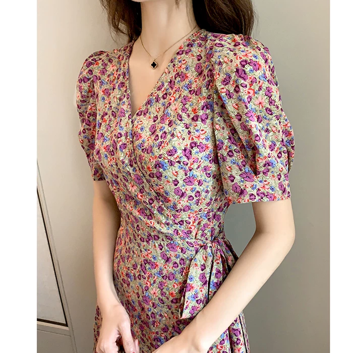 Váy mùa hè mới màu tím hoa của phụ nữ retro phong cách Pháp là một người đàn ông nhỏ bé - A-Line Váy