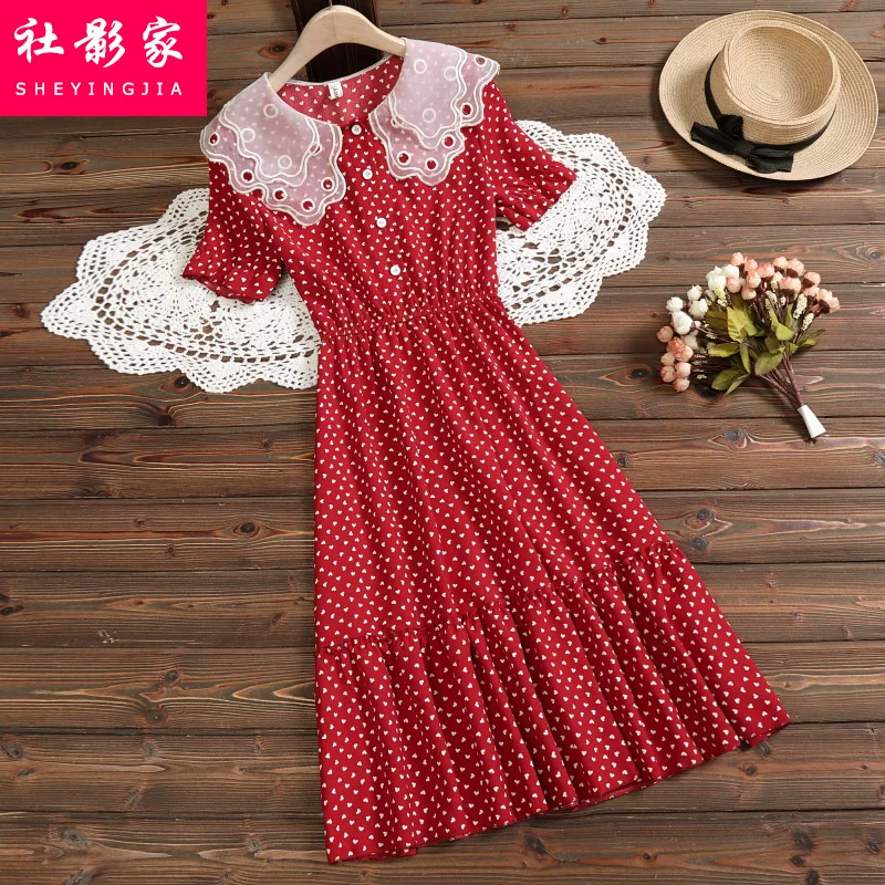 Phụ nữ mùa hè 2021 váy mới cổ tích rừng siêu tiên eo nhỏ một đường sóng chấm váy voan - A-Line Váy