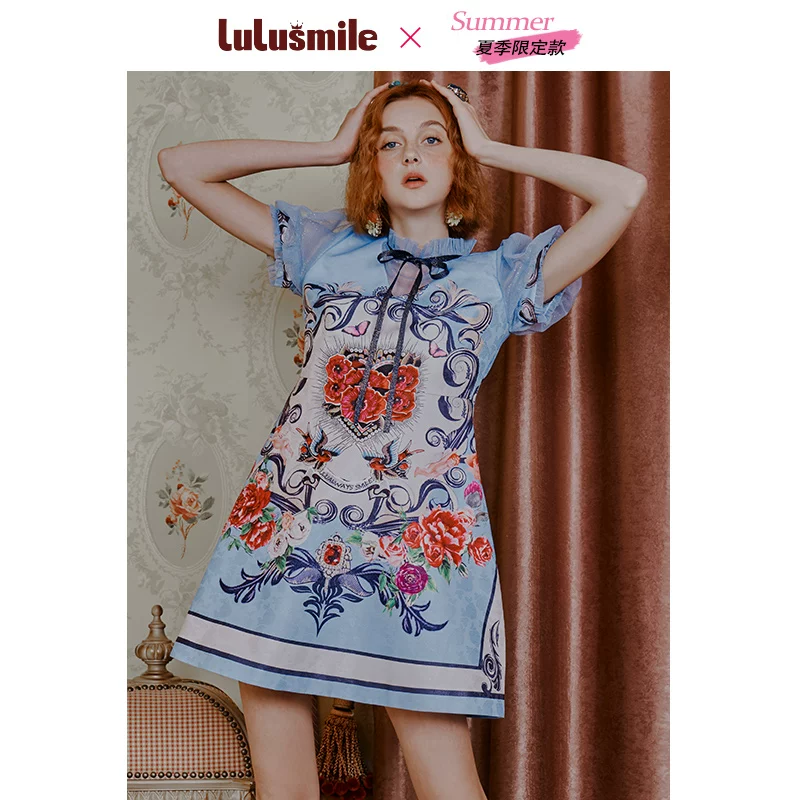 lulusmile Tôi yêu Lulu mùa hè lưới mới in lưới nối A-line nữ DKB5226 - A-Line Váy