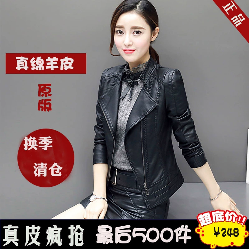 Áo khoác da nữ làm áo khoác da xe máy Da cừu nữ quần áo thời trang - Quần áo da