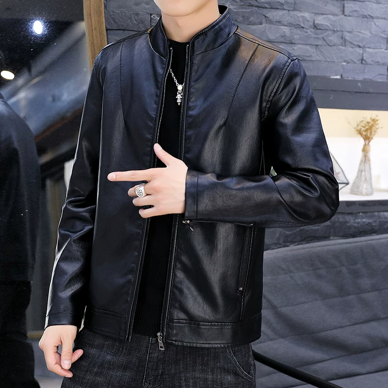 Áo khoác da nam mùa xuân nam mùa thu phong cách Hàn Quốc xu hướng tự tu đẹp trai mùa thu và mùa đông nhung mới xe máy da pu - Quần áo da