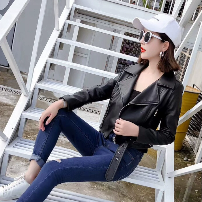 Mùa xuân 2019 áo khoác da mới cho nữ áo khoác ngắn nữ phiên bản Hàn Quốc của áo khoác mỏng và mỏng pu xe máy áo khoác all-match - Quần áo da