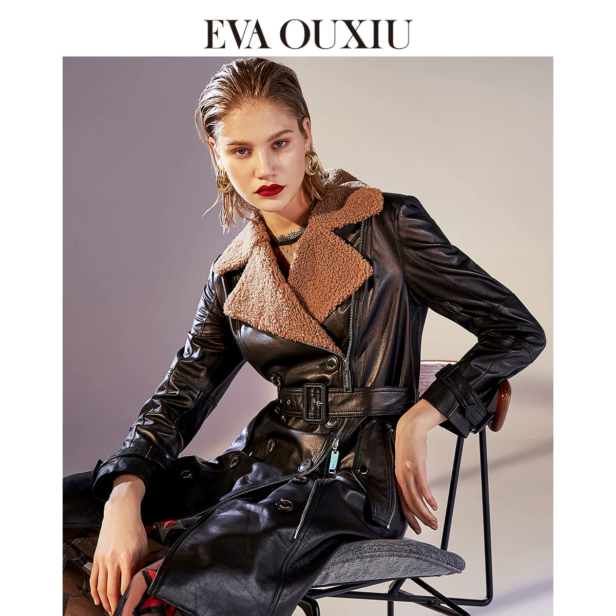 Shi Ming 2020 Thu / Đông Âu và Mỹ Da cừu cao cấp Áo khoác giữa gió dài Thời trang Xu hướng da Da Áo khoác nữ - Quần áo da