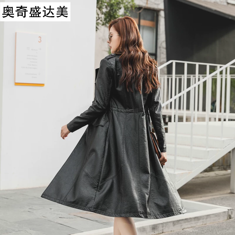 Mùa xuân và mùa thu 2020 áo khoác da mới cho nữ áo khoác dài giữa áo khoác da nữ dài trench coat nữ áo khoác da nữ mỏng - Quần áo da