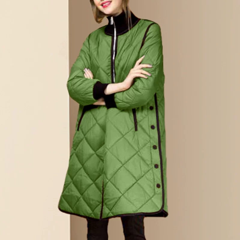 A-line đơn áo ngực xuống phụ nữ dài quá đầu gối giảm béo túi lớn áo ấm - Xuống áo khoác