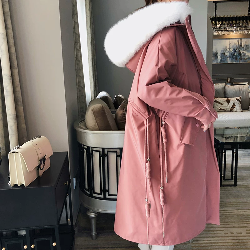 Siti màu hồng lông lớn cổ áo trắng ngỗng xuống áo khoác nữ thêu giữa dài thêu thời trang lớn áo khoác mùa thu đông - Xuống áo khoác