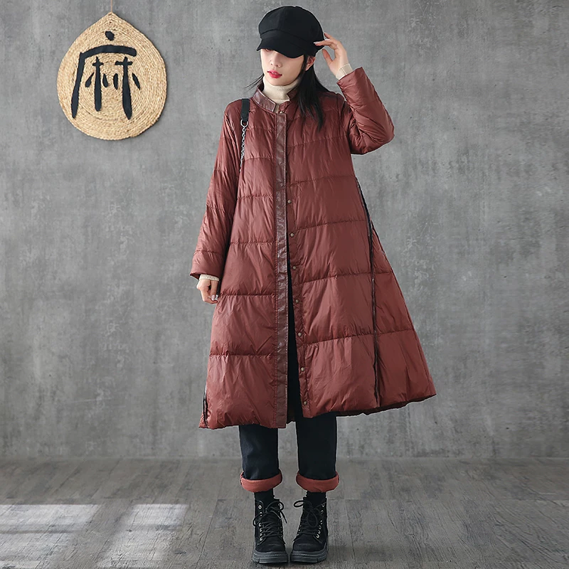 Hongyue Hall quần áo văn học và nghệ thuật nữ nguyên bản 2019 mùa đông mới nhẹ ấm giữa áo khoác dài giảm nhẹ áo khoác nữ - Xuống áo khoác
