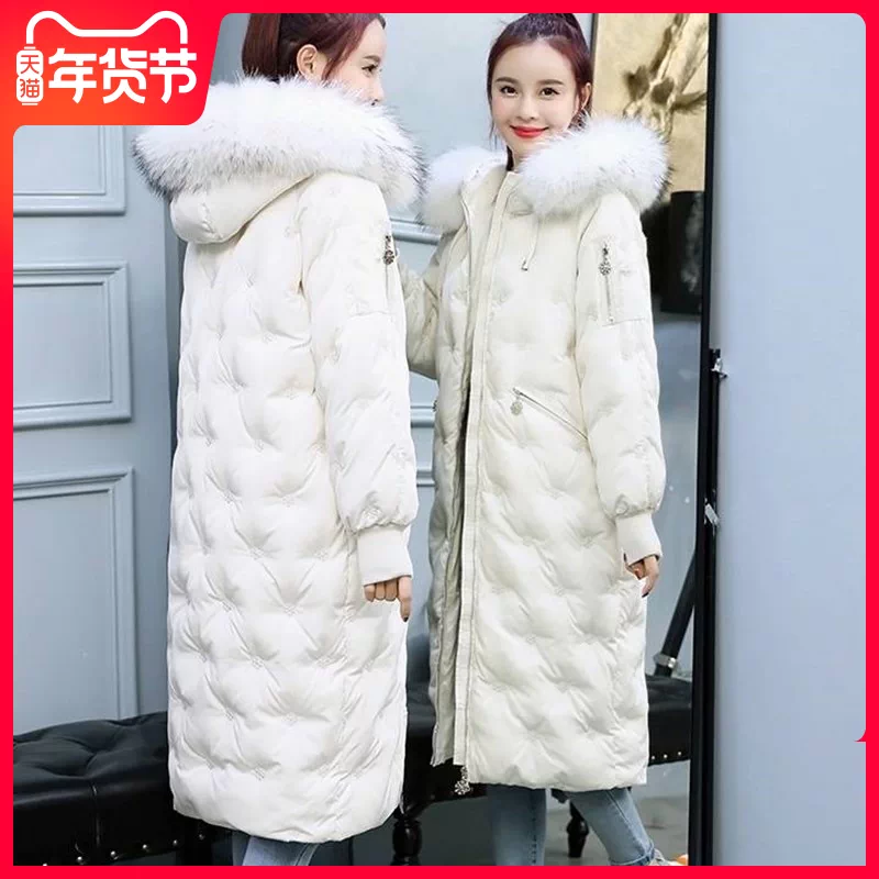 2019 mới dày dày áo khoác đệm áo khoác nữ 2019 mùa đông mới dài qua đầu gối xuống áo khoác bông lớn lông cổ áo gai - Bông