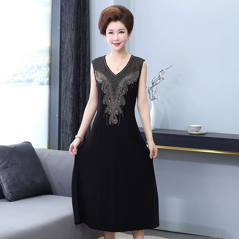 Váy, trung niên, quá gối, mẹ ngoại, vợ rộng, áo dài, hoa thêu, váy mùa hè, quần áo phụ nữ, 199888 - Váy dài