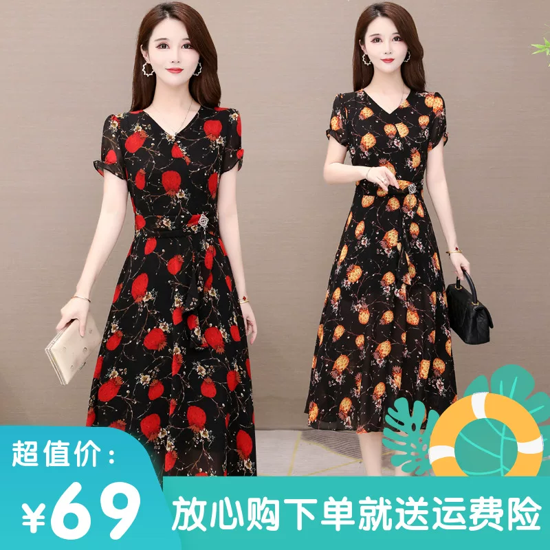 Vào mùa hè năm 2020, người vợ rộng mới mặc váy mỏng và có kích thước lớn của phụ nữ che bụng bầu váy hoa dài đầm voan - Váy dài