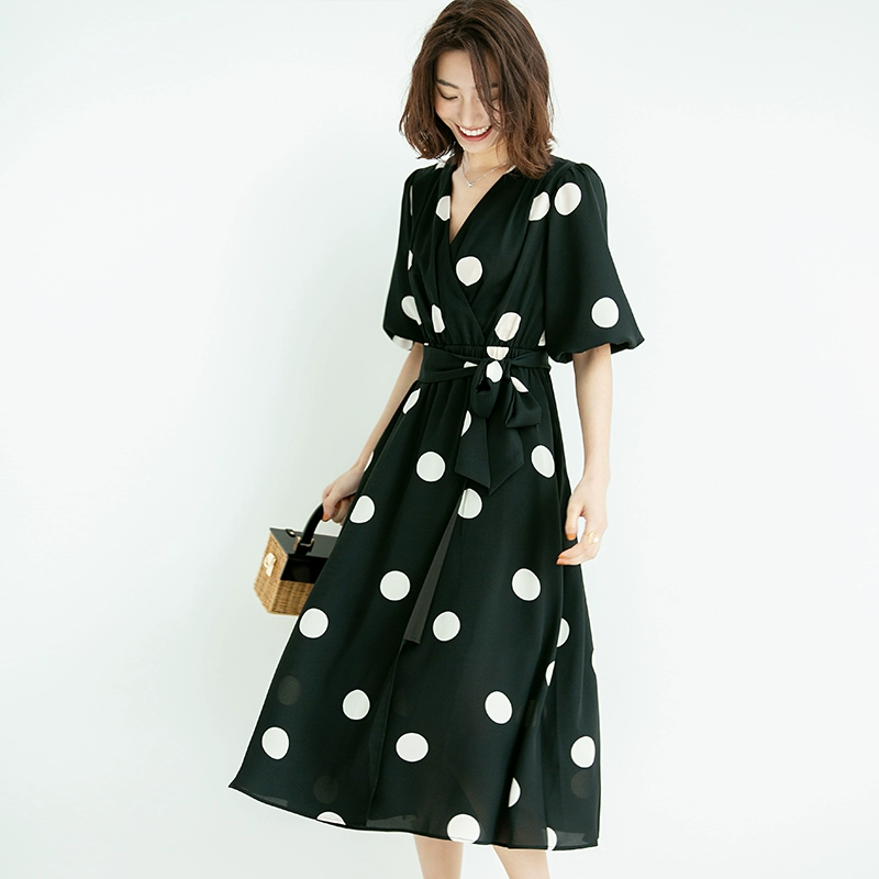 Váy đen chấm bi kiểu Pháp retro dài 2020 mùa xuân hè hè mới của phụ nữ phong cách nước ngoài eo thon eo - Váy dài