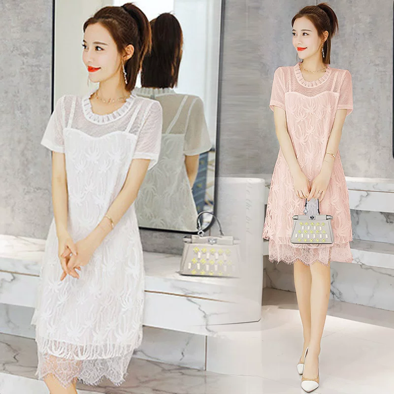Phụ nữ mùa hè mới 2021 quần áo phổ biến tính khí cổ tích váy siêu tiên trên đầu gối váy dài váy ren - Váy dài