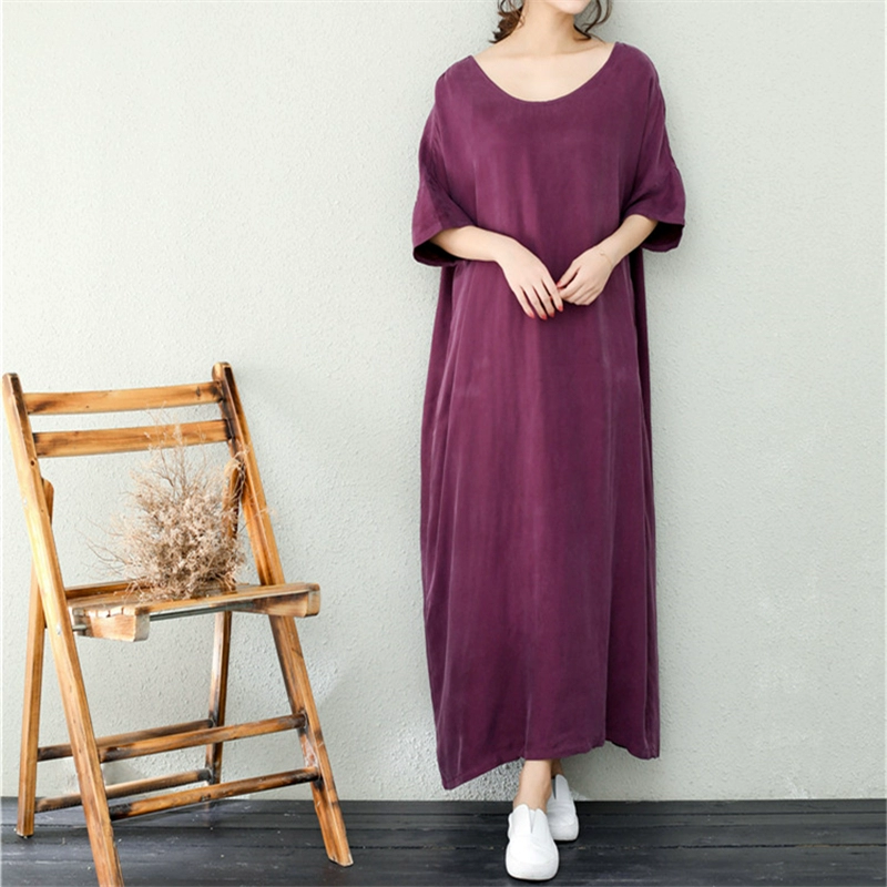 Mùa hè retro váy cúp ngực của phụ nữ cổ tròn thả vai tay áo lỏng lẻo và váy dài mỏng cỡ lớn Áo choàng Zen - Váy dài