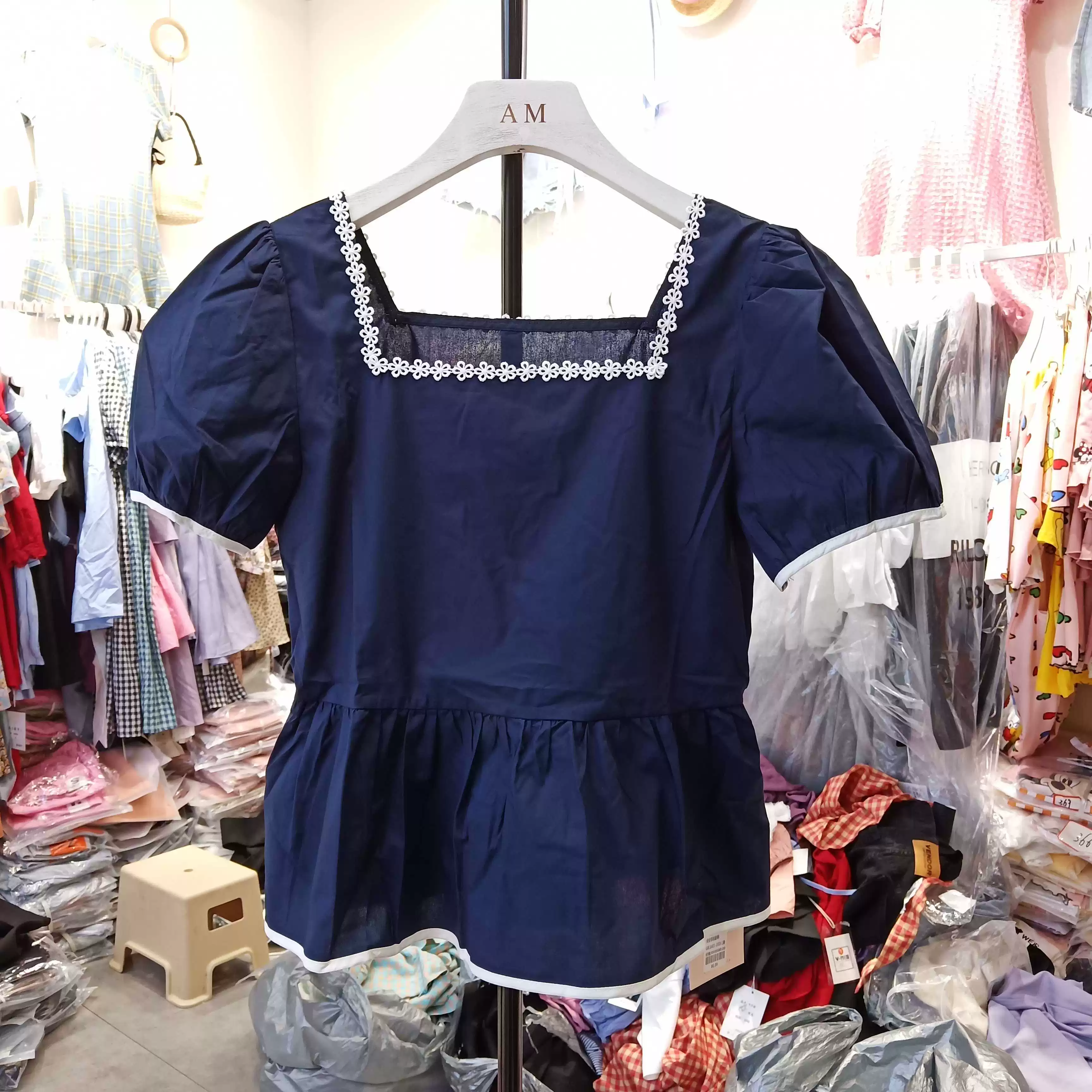 Áo sơ mi nữ mùa hè Hàn Quốc cổ áo vuông lộ xương đòn tay áo ngắn thắt lưng giảm béo Áo sơ mi nữ Hàn Quốc 8139 - Áo sơ mi