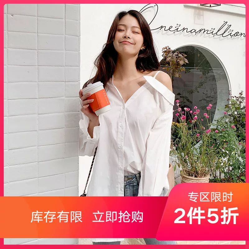 Mùa xuân 2020 mới cá tính của phụ nữ là mỏng và giả hai chiếc áo dài tay nữ Han Fan khoe eo thon - Áo sơ mi