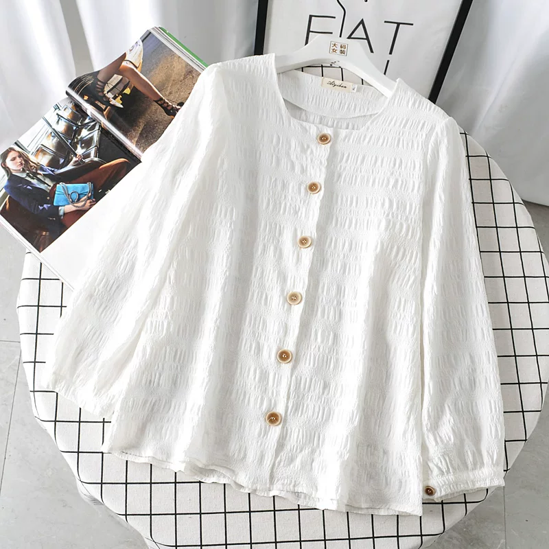 Mùa hè hoang dã và thoải mái với chất liệu cotton trắng và lanh, áo choàng in họa tiết chấm bi, vải lanh rộng, áo sơ mi ngắn tay - Áo sơ mi