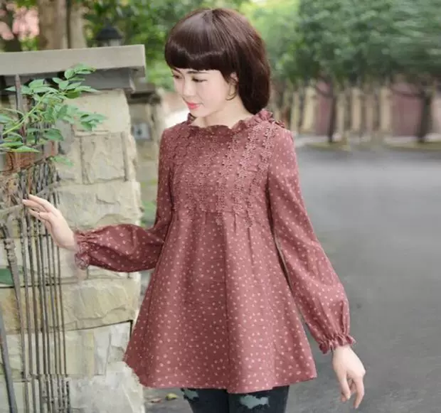 Thương hiệu sợi lưới của phụ nữ hàng đầu mùa giải 2021 mới sợi mây thơm mẹ áo sơ mi hoa của phụ nữ dài tay thời trang phương tây áo sơ mi nhỏ - Áo sơ mi