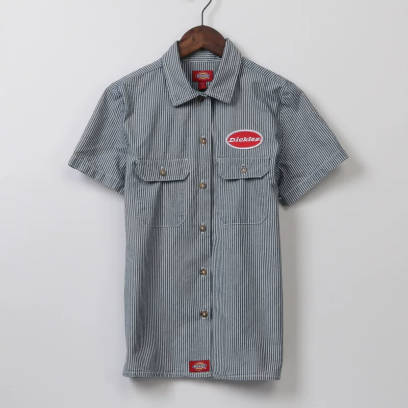 Phụ nữ áo sơ mi sọc ngắn tay mùa hè ngoại thương ban đầu áo khoác denim đơn của phụ nữ áo khoác mỏng mùa hè ngọt ngào phong cách đại học mới - Áo sơ mi