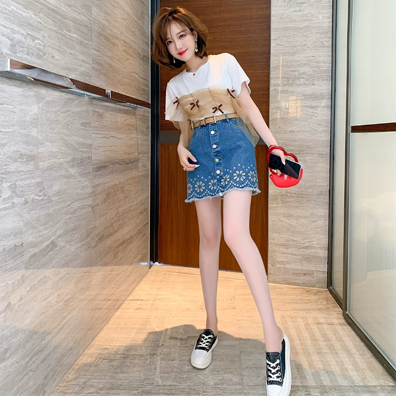 Mùa hè 2020 mới Hàn Quốc quần lửng nữ quần áo lưới đỏ quần áo nửa tay in siêu lửa áo thun tay ngắn - Áo phông