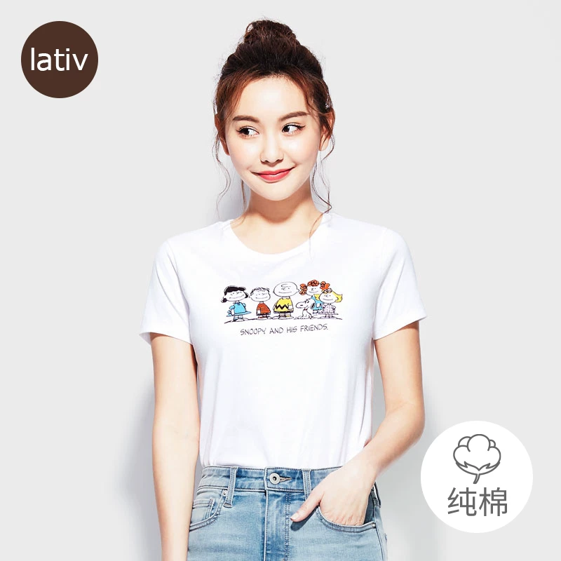 [清] lativ Chengyi Snoopy cotton nữ ngắn tay áo thun chính hãng IP xu hướng quần áo phụ nữ mùa hè hàng đầu - Áo phông