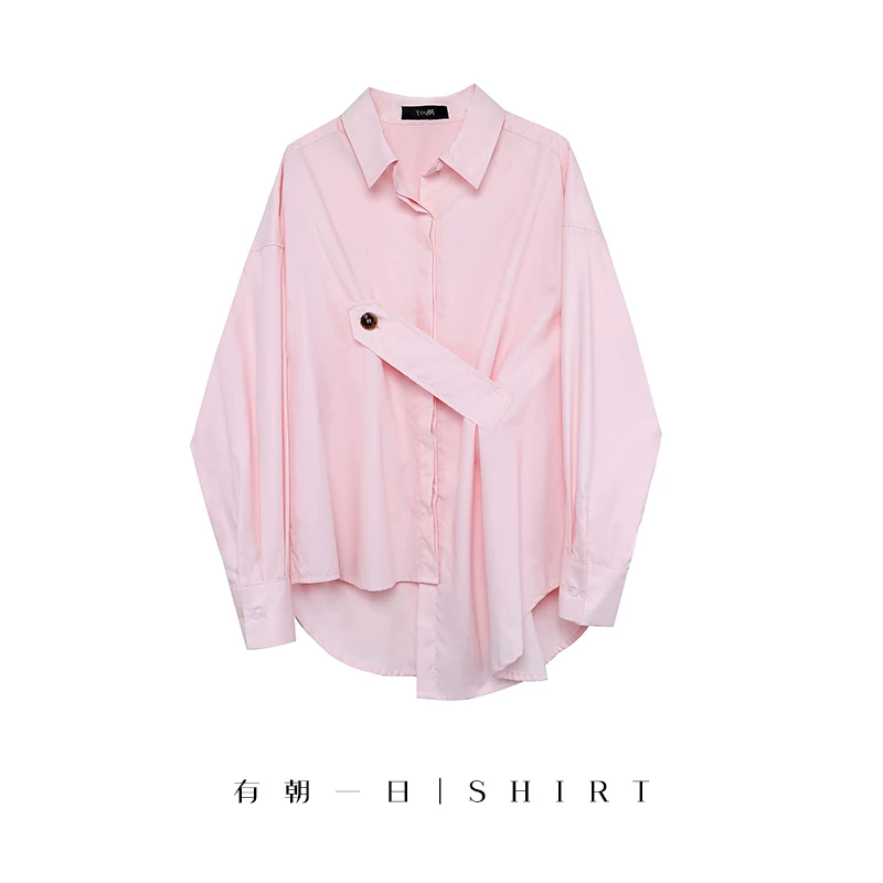 Kan Qingzi Shen Mengchen sao cùng một đoạn áo hồng cô gái thiết kế ý nghĩa phiên bản Hàn Quốc dài tay mùa xuân lỏng lẻo của Hàn Quốc - Áo sơ mi dài tay