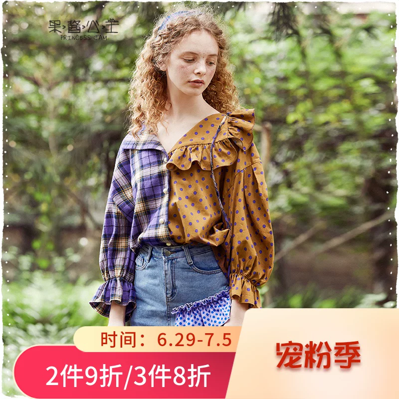 Jam Princess Retro Stripe Spring 2020 New Mori Bất đối xứng Niche Áo sơ mi nối WXM Mansing - Áo sơ mi dài tay