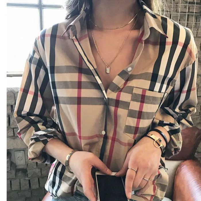 [Naersling] Thời trang nữ áo sơ mi dài tay họa tiết mùa thu mới đơn giản kết hợp áo blouse nữ - Áo sơ mi dài tay