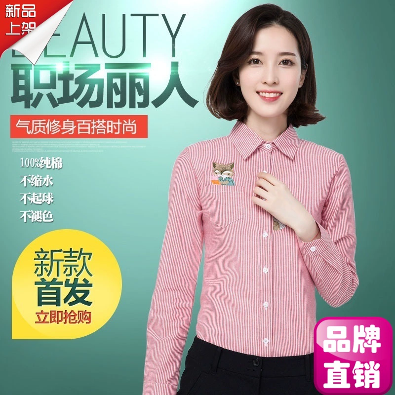 Quần áo mùa xuân và mùa thu 2017 mới nvz của phụ nữ nv inch được gọi là Sơn Sơn cotton sọc hoang dã áo sơ mi sinh viên nvs áo sơ mi dài tay - Áo sơ mi dài tay