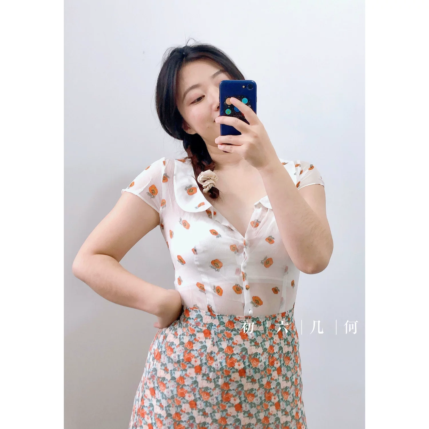 0519 Mùa hè mới của Hàn Quốc Dongdaemun thời trang đỏ nhỏ hoa vuông cổ áo hoang dã mỏng pha trộn áo ngắn - Áo sơ mi dài tay