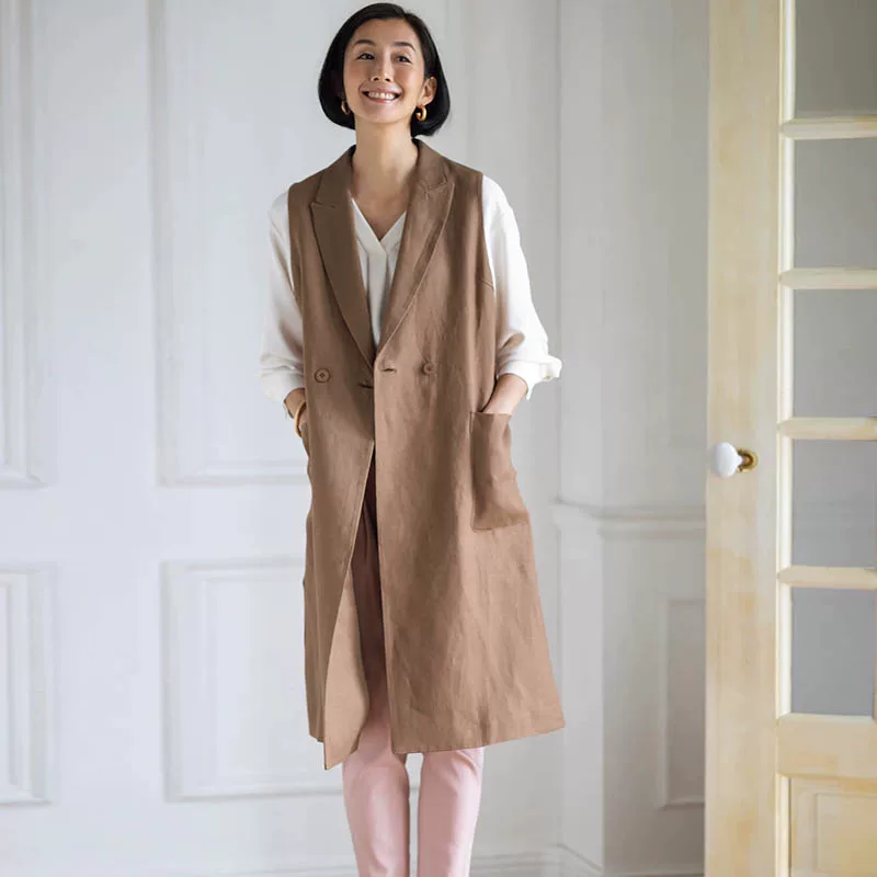 Miễn phí vận chuyển ra nước ngoài thư trực tiếp năm 2021 váy mùa hè Nhật Bản nhập khẩu quần áo phụ nữ mua áo khoác vest dài giữa túi len nguyên chất - Áo vest